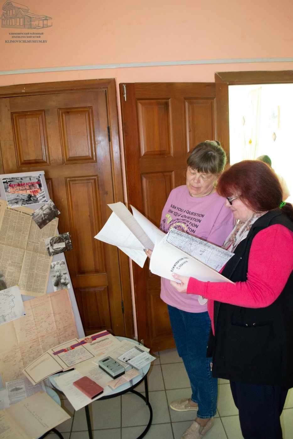 В небольшой тематической выставке "Черный апрель 86-го" были представлены списки климовчан участников ликвидации последствий катастрофы, периодические издания, вышедшие в первые дни после аварии. Несомненный интерес представляют личные документы и вещи Александра Корниенко, непосредственного участника вывоза людей из зоны атомной станции. Его, как и многих других наших современников, ставших непосредственными участниками тех событий, можно назвать героями своего времени.